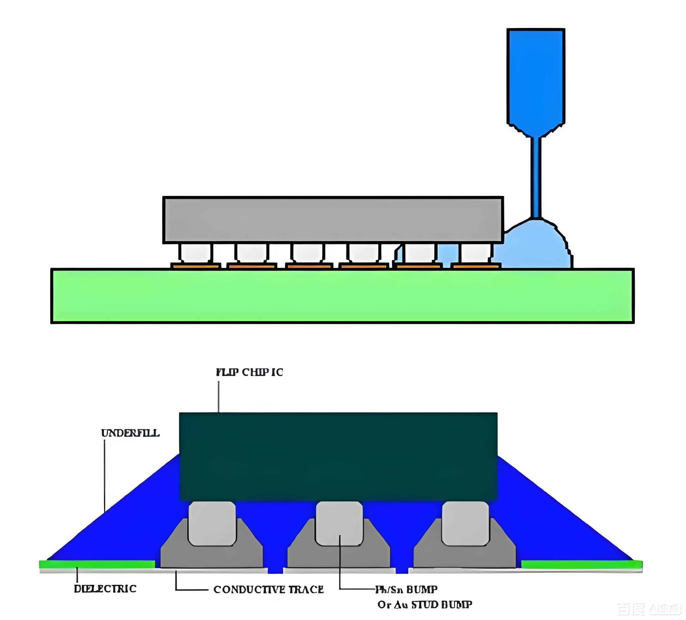· 毛細流動型底部填充(CUF):依賴膠水毛細流動自然填充,工藝簡單但耗時較長