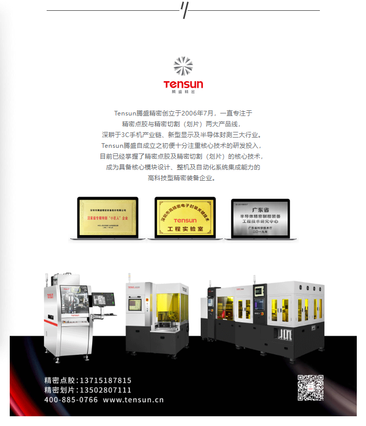 基于近年來中國先進封裝產(chǎn)業(yè)的崛起與發(fā)展,Tensun騰盛精密周云總監(jiān)從客戶實踐角度出發(fā),重點分享了騰盛十六年來在精密點膠與精密切割工藝上的沉淀與突破。周云總監(jiān)表示,在精密點膠應用上,騰盛以媲美國際品牌的品質獲得眾多頭部企業(yè)的信賴,騰盛精密的點膠設備以絕對市場占有率,獲得國家級專精特新“小巨人”稱號;而在精密切割應用上,騰盛精密始終保持著12寸國產(chǎn)劃片設備出貨第一的紀錄,同時騰盛精密也是中國第一家研制12寸劃片設備的企業(yè)。
