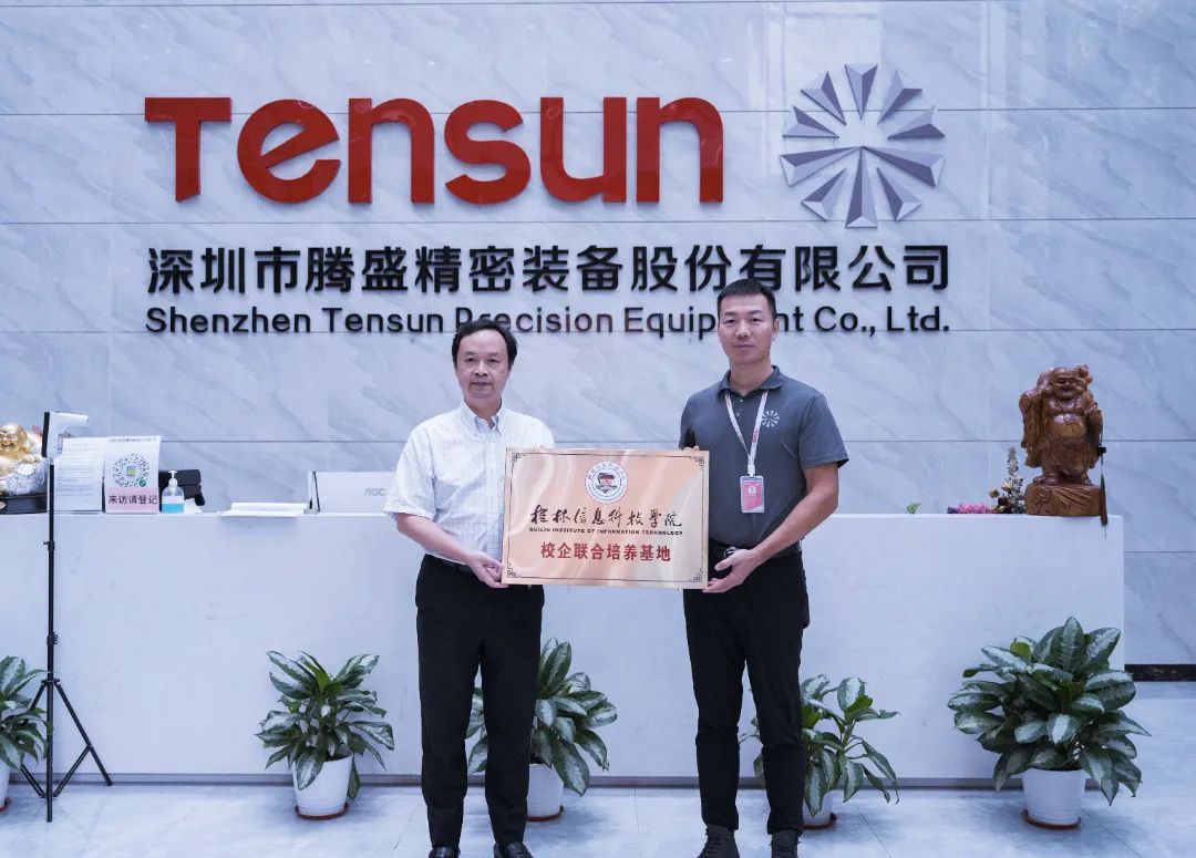 8月15日,桂林信息科技學院董事長羅欣、校長梁丁丁等一行來到Tensun騰盛精密進行參觀走訪,騰盛總裁盧國明、副總裁盧國藝以及人力資源各級領導熱情接待了他們的到來,雙方就如何加大工程技術型人才培養、加大雙向介入的力度等方面展開深層探討。