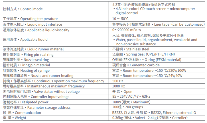 2、膠量精度可控制在 2% 以內;3、穩定工作頻率500Hz,瞬時頻率可達1000Hz;